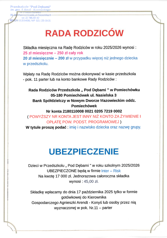 Strona główna Aktualności Ogłoszenie! - Składka na radę...